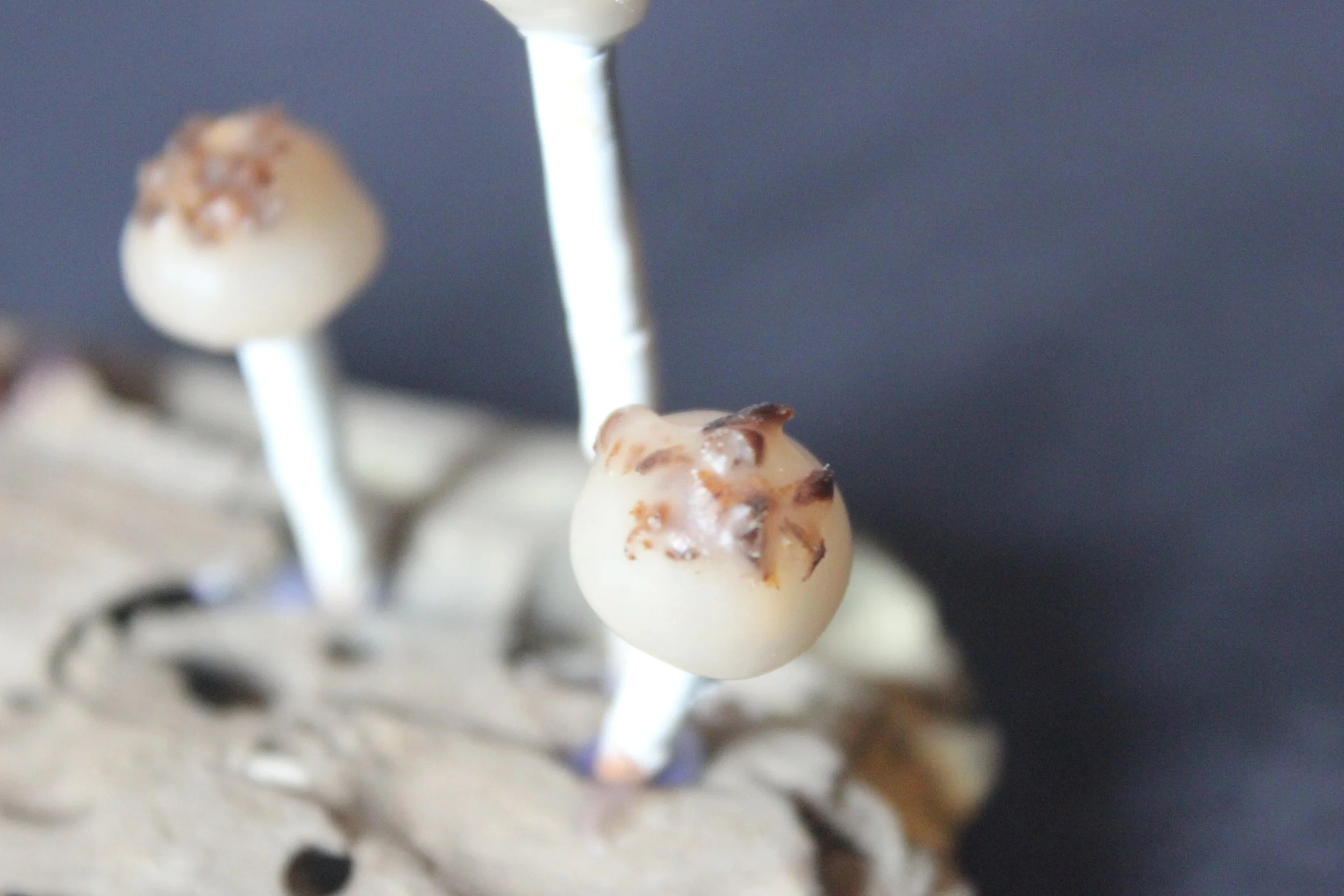 A typical single spore germinates into a monokaryotic mycelium, which cannot reproduce sexually; when two compatible monokaryotic mycelia join and form a dikaryotic mycelium, that mycelium may form fruiting bodies such as mushrooms.