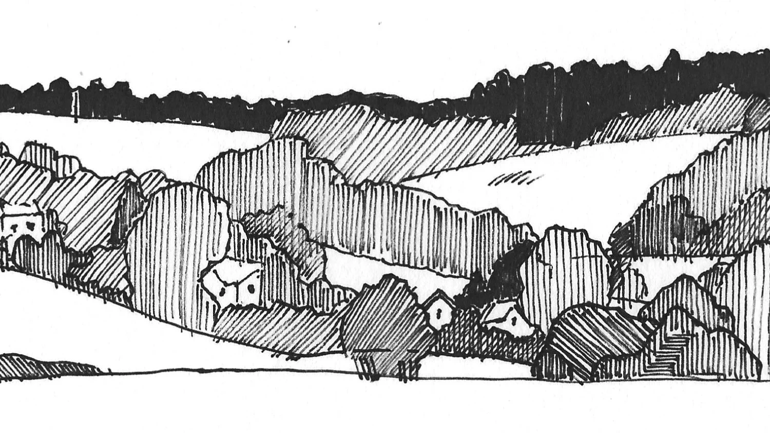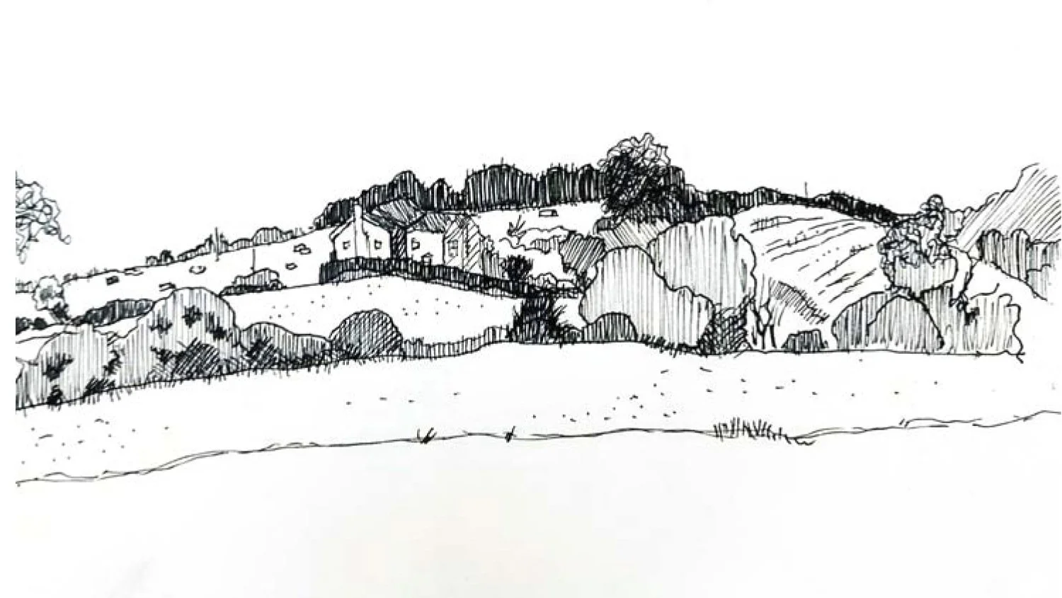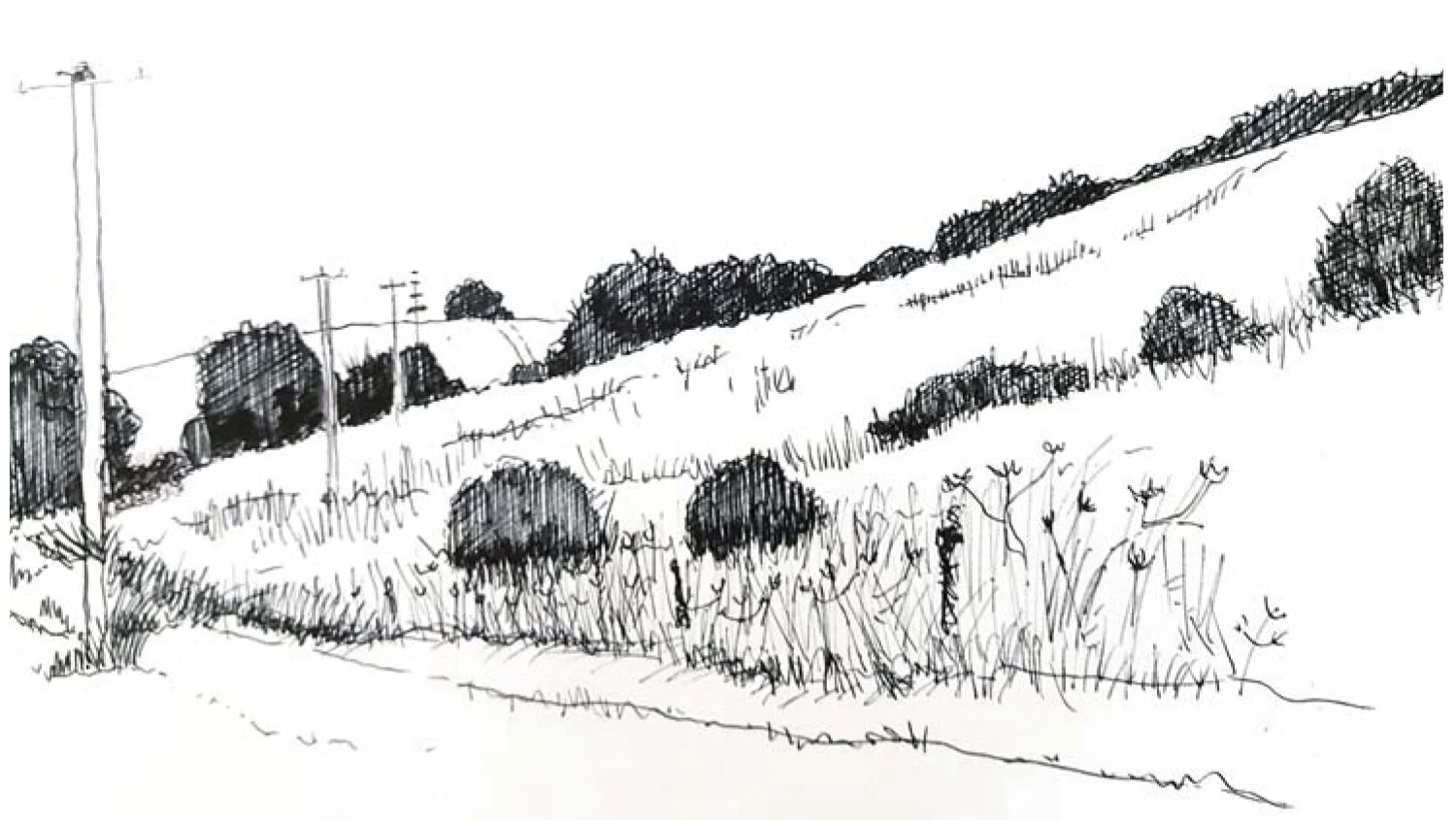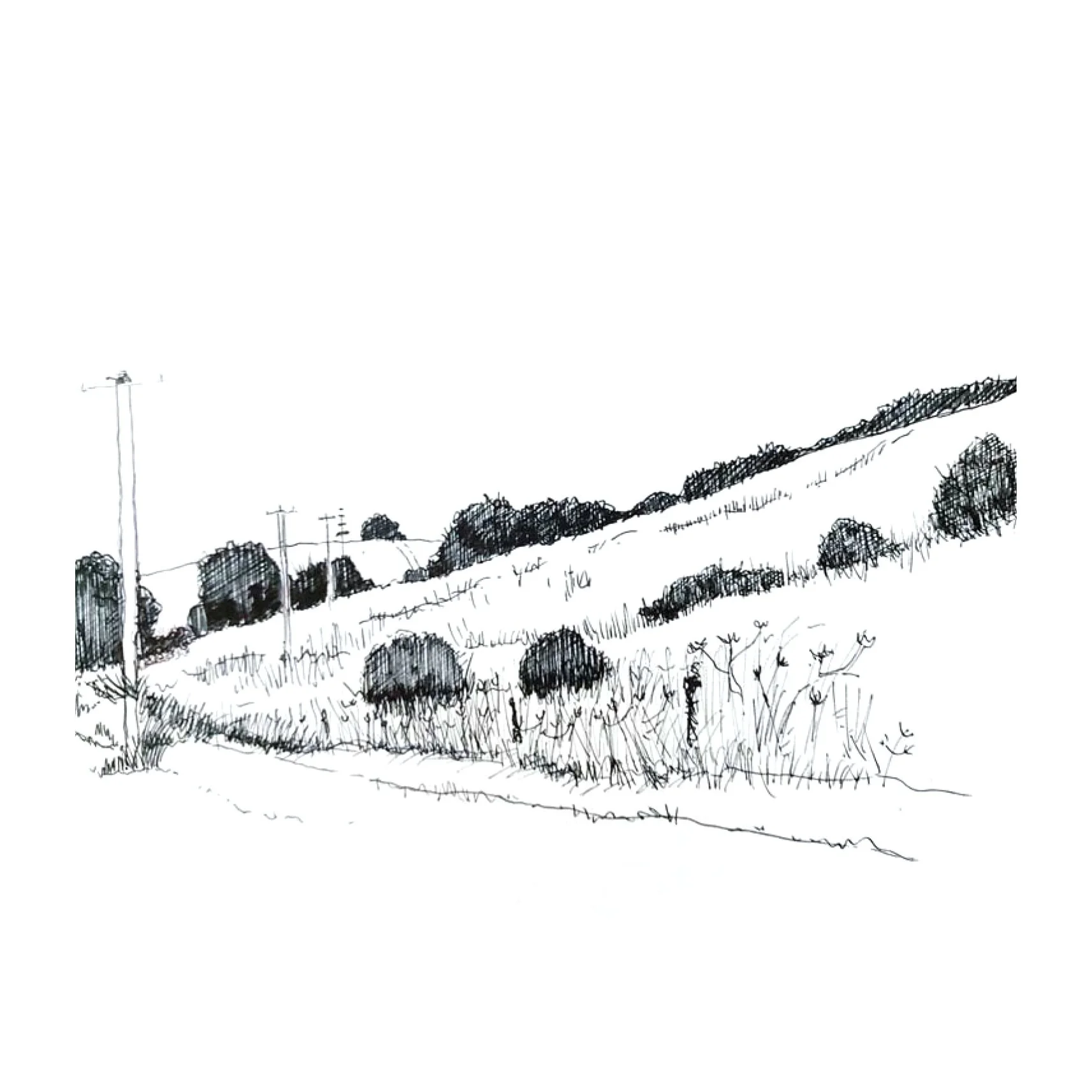 - Here a selection of original drawnings, pen direct to paper, on site in a field with the forces of nature -